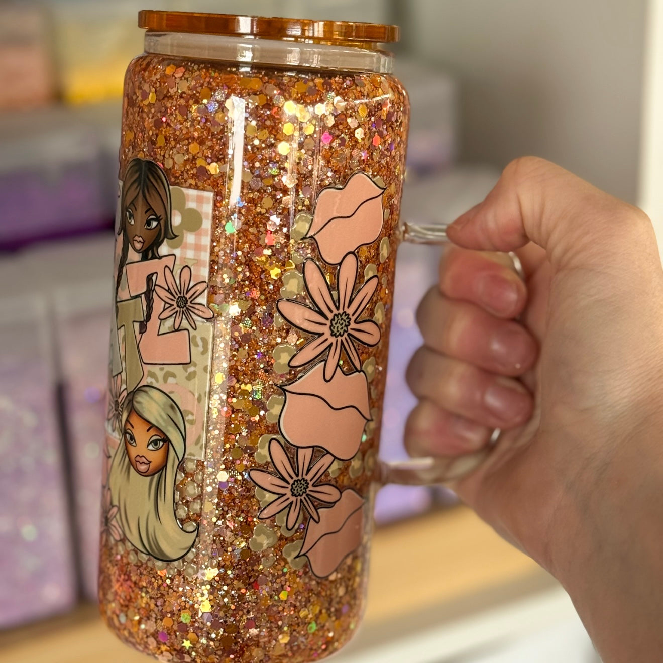 Glass cup with handle